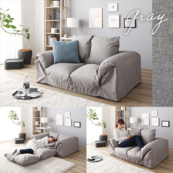 《3WAY ソファーベッド/ローソファー》『日本製 一人暮らしにおすすめ』ごろマット グレー【0G010】