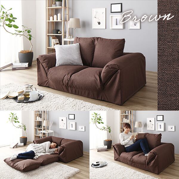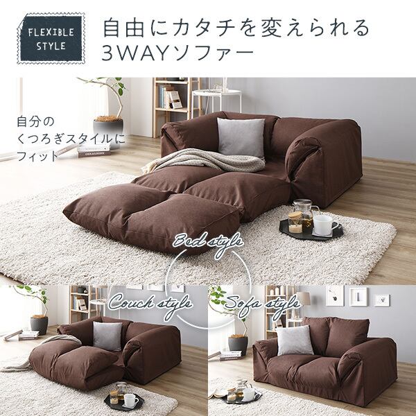 《3WAY ソファーベッド/ローソファー》『日本製 一人暮らしにおすすめ』ごろマット ブラウン【0G010】